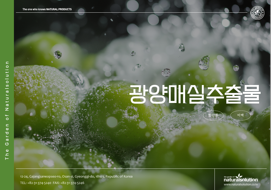 백운산 기슭의 천혜의 환경에서 자란 광양매실은, 전통식품명인 14호에 이름을 올린 매실명인의 매실을 활용하여 개발하였습니다. 전남 광양은 겨울이 따뜻하고 비가 많이 내리는 특성이 있으며 매화가 유명한 매화의 고장입니다. 섬진강의 맑은 물을 먹고 자란 타지역보다 과즙이 풍부하다고 알려진 광양매실은 개화시기가 빨라 충분한 햇빛을 받고 자라는 특징을 지닌 프리미엄 매실입니다. 매실은 탄닌, 구연산, 사과산, 숙신산, 플라보노이드, 폴리페놀류, 비타민류 등 다양한 생리활성 성분을 함유하고 있어 강력한 항산화와 미백작용을 합니다. 지역적 특색을 담은 특별한 매실, K-뷰티의 일환인 K-매실로 다양한 제품을 기획해 보세요~!